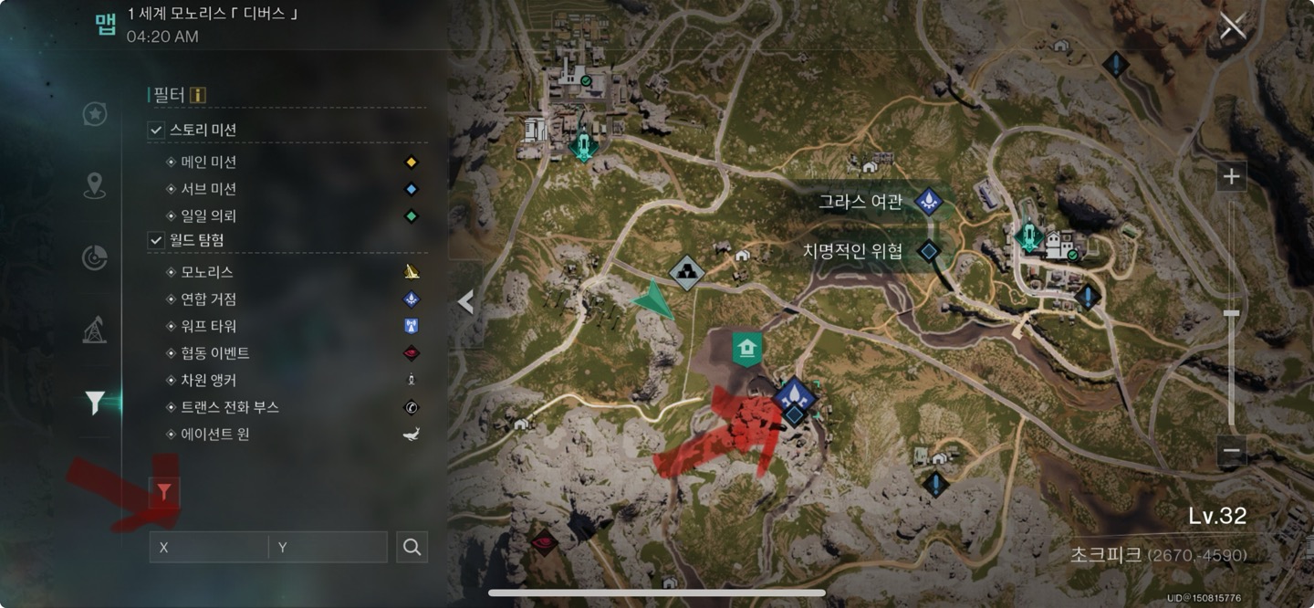 2.좌측 하단 좌표 표시 (2754,-4505) 입력 후 추적하기