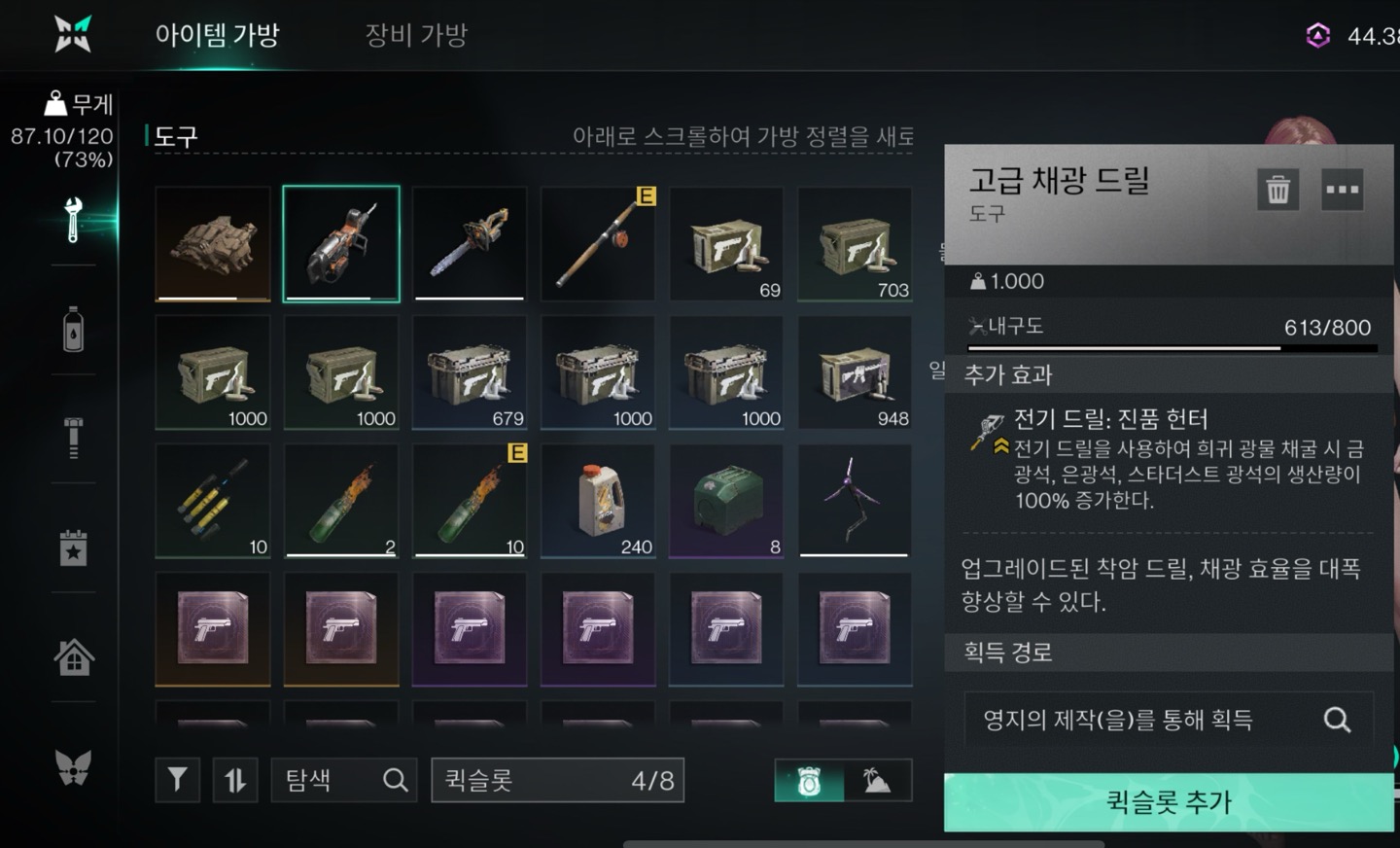 고급 채광 드릴 (태양광 드릴이 없는 관계로 보유하고 있는 가장 좋은 성능의 드릴)
